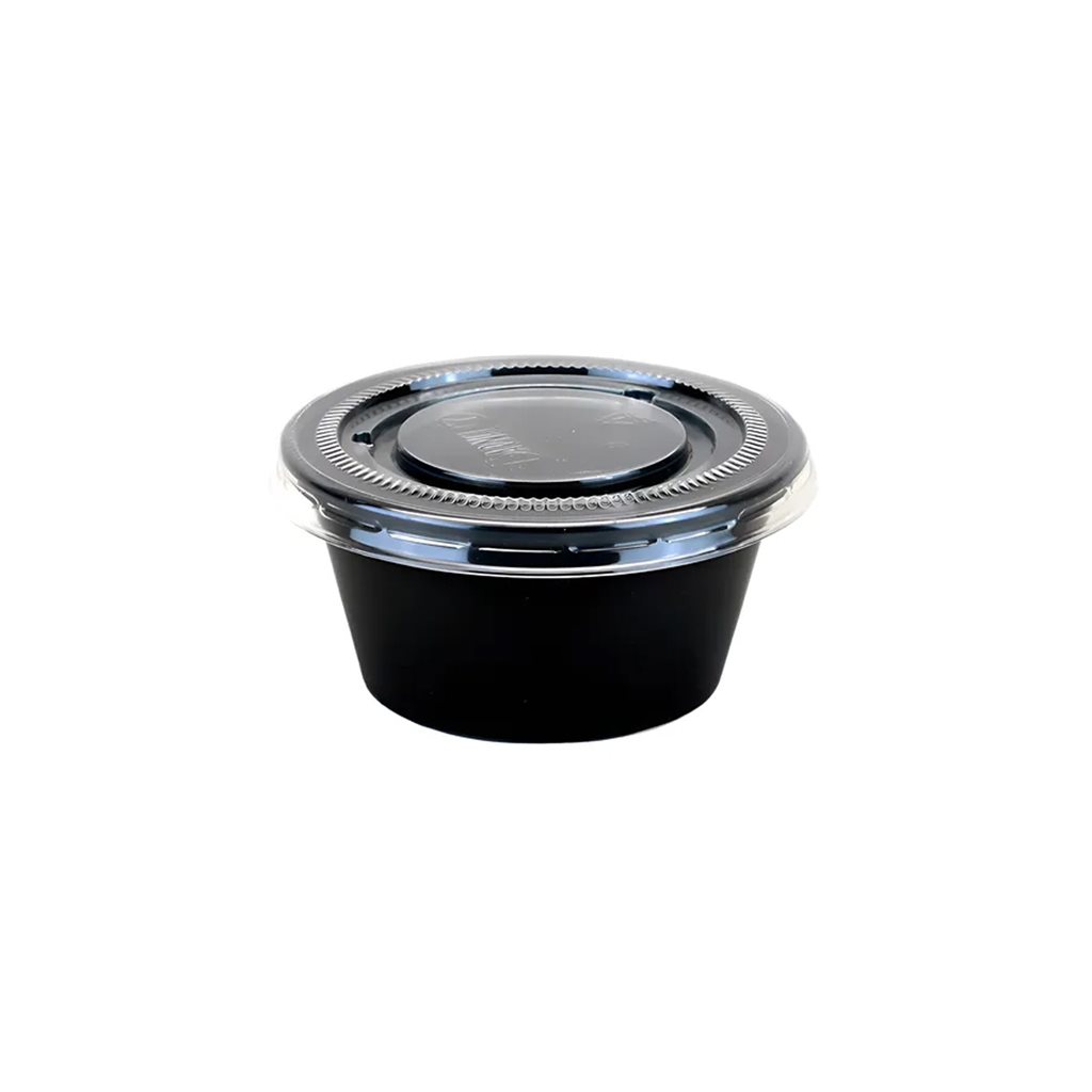 POTE DIP P/SALSA 1 OZ/29.5ML NEGRO C/TAPA PET CRISTAL P/100