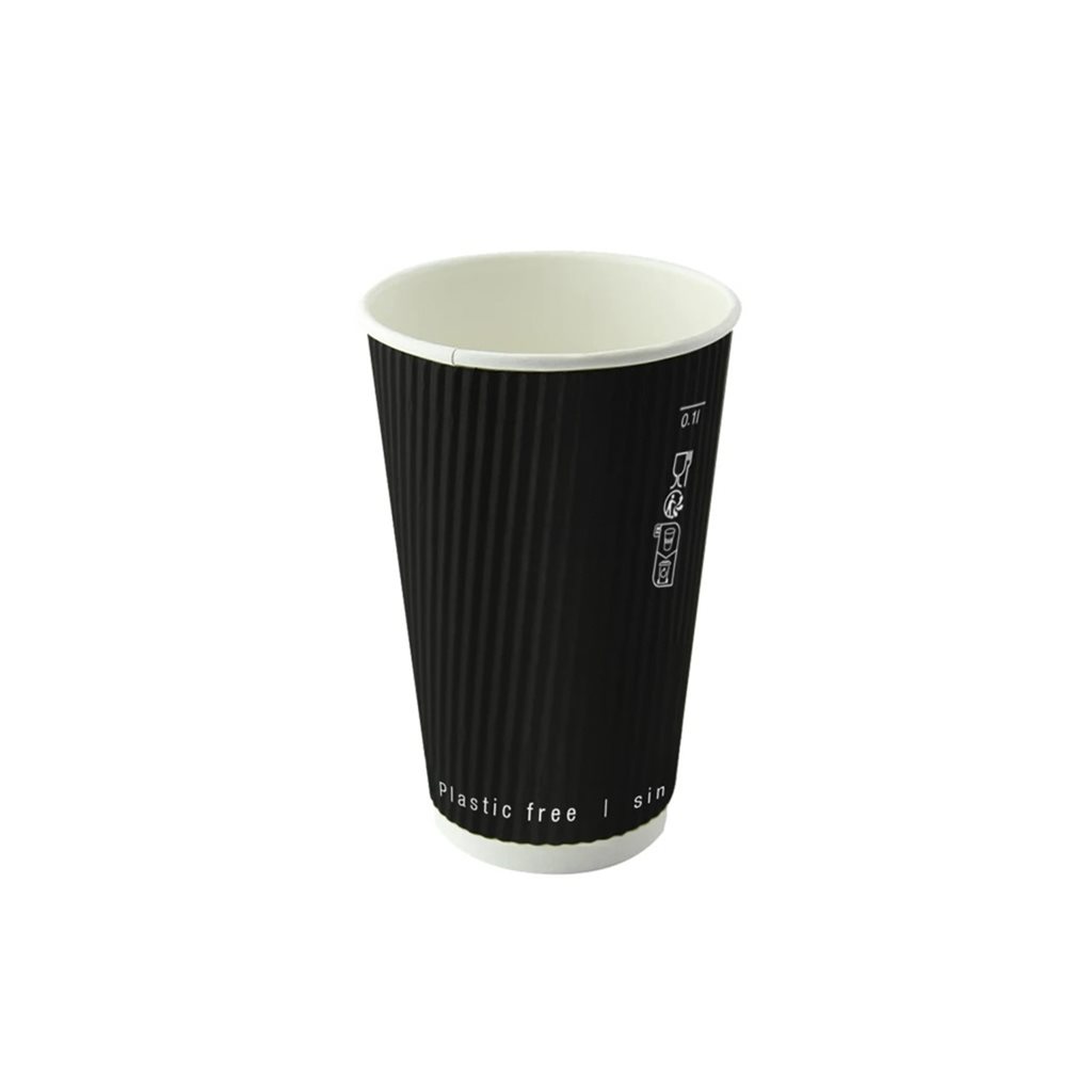Vaso Cartón Kraft Corrigado Negro Doble Pared 230ml x25