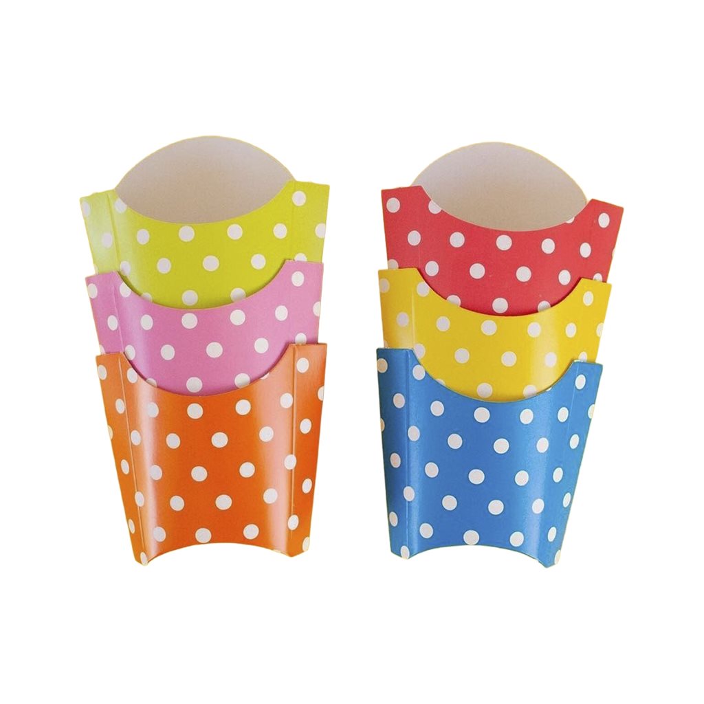 ESTUCHES PARA PAPAS FRITAS COLOR C/LUNARES SURT x50