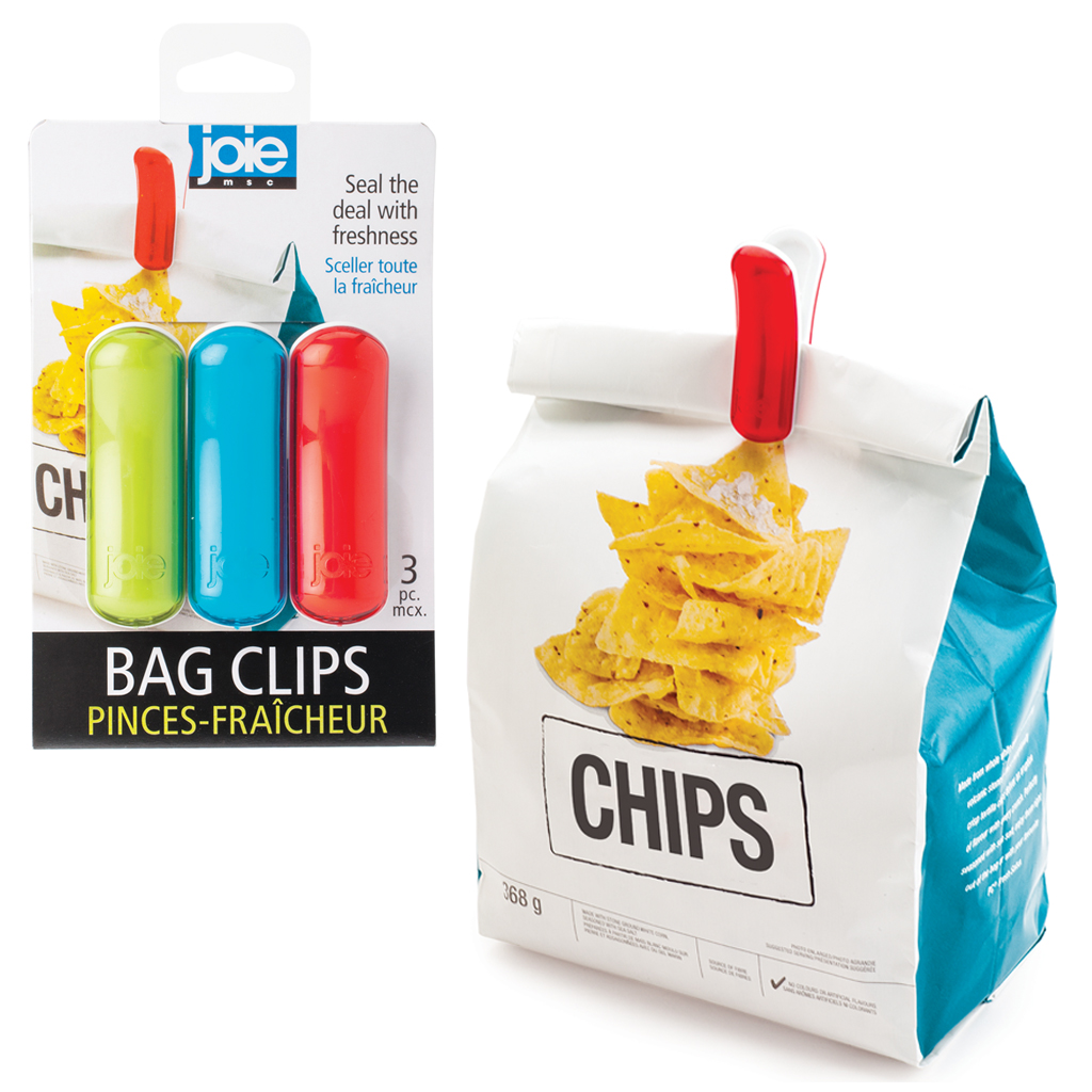 Estos clips para bolsas de Joie, que se cierran de forma rápida y sencilla para que los alimentos se mantengan frescos durante mas tiempo., son divertidos y faciles de usar. Ideal para sellar bolsas de papas fritas, pan, cereales, granos y mucho mas.