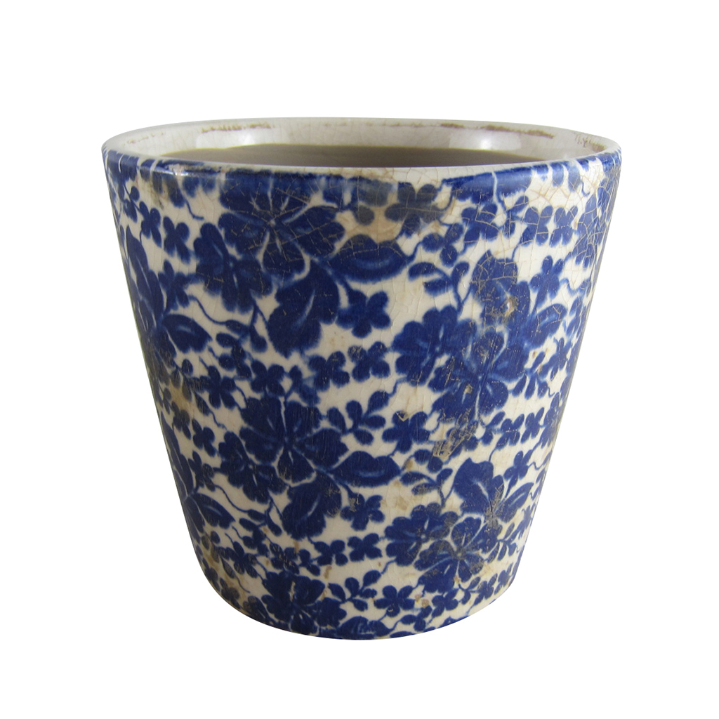 MACETA CERAMICA 14X14X13CM TREBOLES AZUL