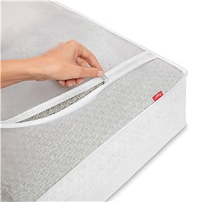 esta funda protectora multiuso protegerá tus prendas del polvo y ayudará a mantenerlas en mejores condiciones más tiempo, se puede guardar debajo de la cama, dentro o encima del armario. En el lateral de la caja de almacenamiento hay un compartimento para guardar la etiqueta identificativa del contenido de la caja. La funda dispone de una rejilla para la mejor circulación de aire