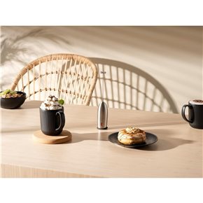 Añade un toque de placer a tu café matutino con el espumador de leche SCHIUMA. Este espumador de leche manual, que funciona con pilas, prepara leche fría en segundos, transformando tu taza de café diaria en una especialidad de cafetería, todo ello desde la comodidad de tu casa. Con un diseño ligero y ergonómico que cabe perfectamente en la palma de la mano, el espumador de leche SCHIUMA funciona como magia. Con solo pulsar un botón, crearás una espuma ligera y aireada para tu capuchino, café con leche, moka o incluso un delicioso chocolate caliente.