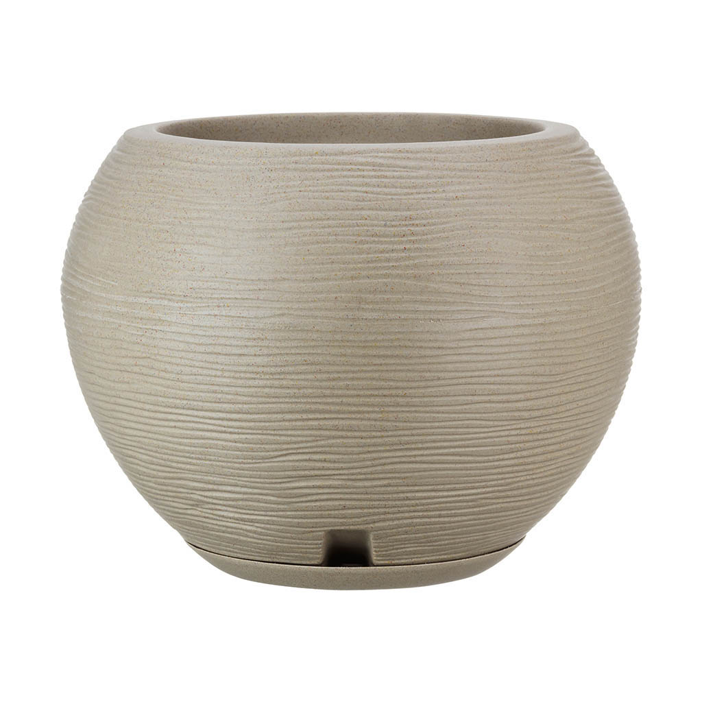 La línea Florença Sisal de la marca Floridis embellece y aporta elegancia a tus plantas de interior o exterior con su textura que recuerda a la calidez del hilo sisal. De 32x32 cm, esta maceta fabricada en material plástico de color beige y textura símil piedra es resistente y duradera.
