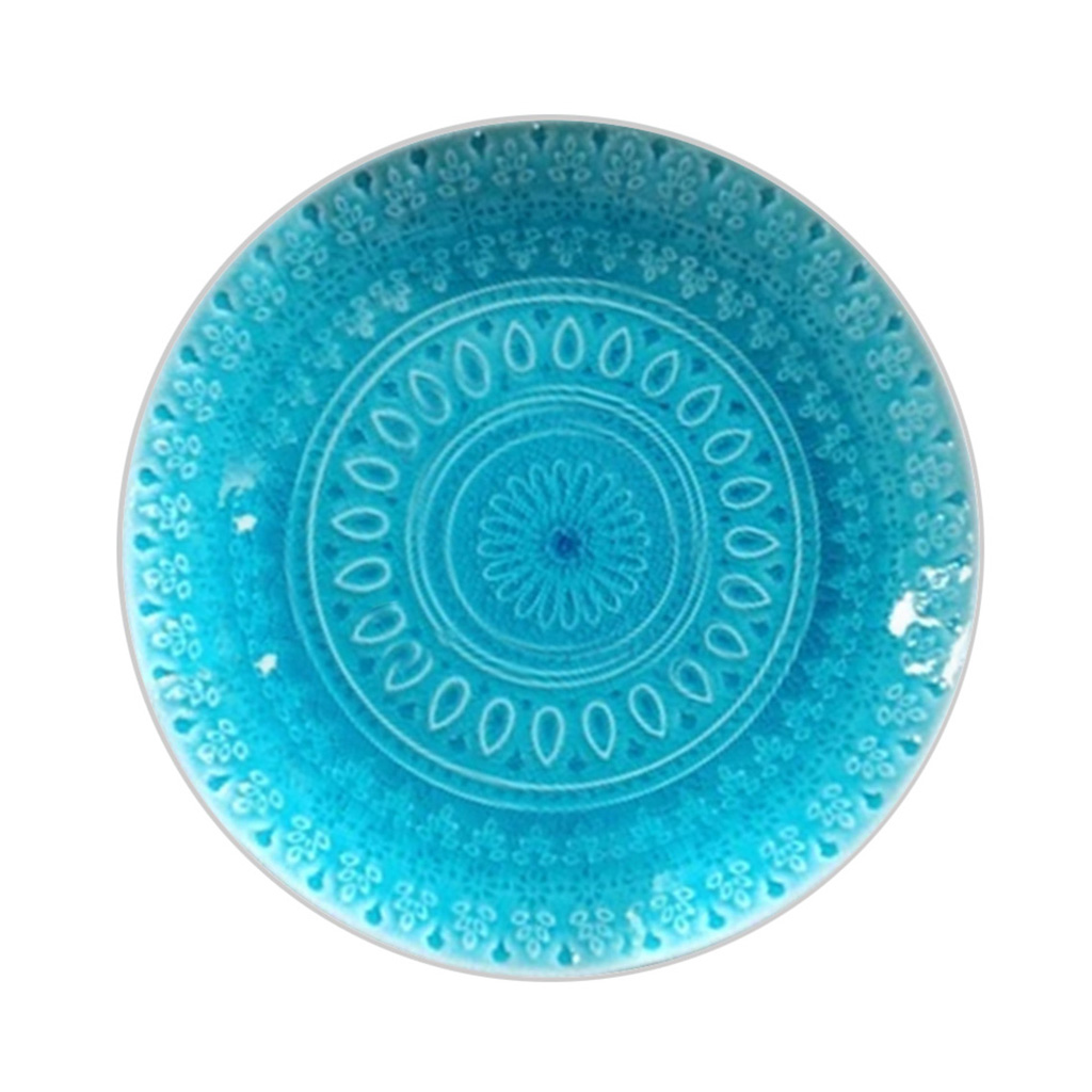 PLATO DE POSTRE 21CM VIDRIADO C/DISEÑO TURQUESA