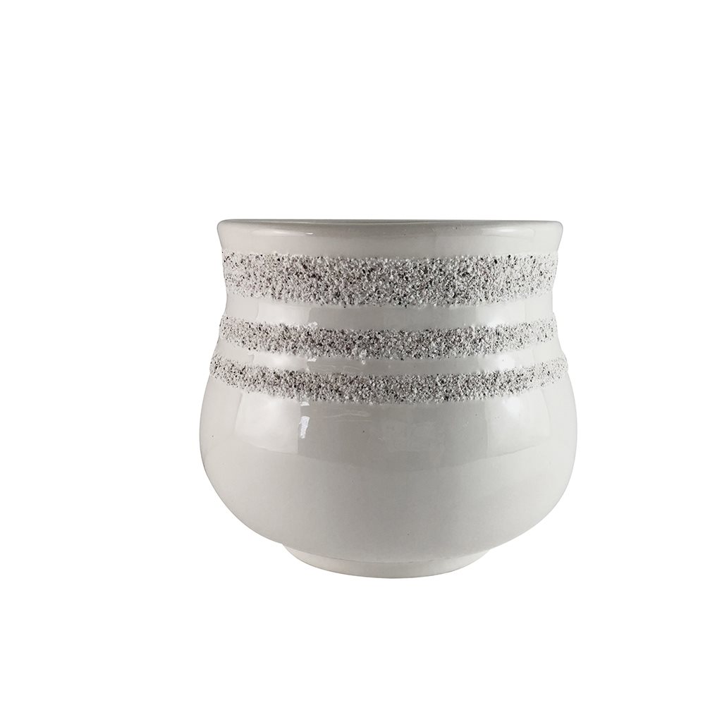MACETA CERAMICA BOMBE ANILLOS 15.5X15.5X13.5CM BLANCO
