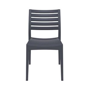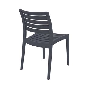 Silla exterior en gris oscuro de diseño moderno, hecha de polipropileno resistente al clima. Asiento y respaldo con láminas ahuecadas. Ideal para espacios al aire libre y se apila fácilmente para guardar. Límite de peso: 120 kg - Material: Polipropileno
