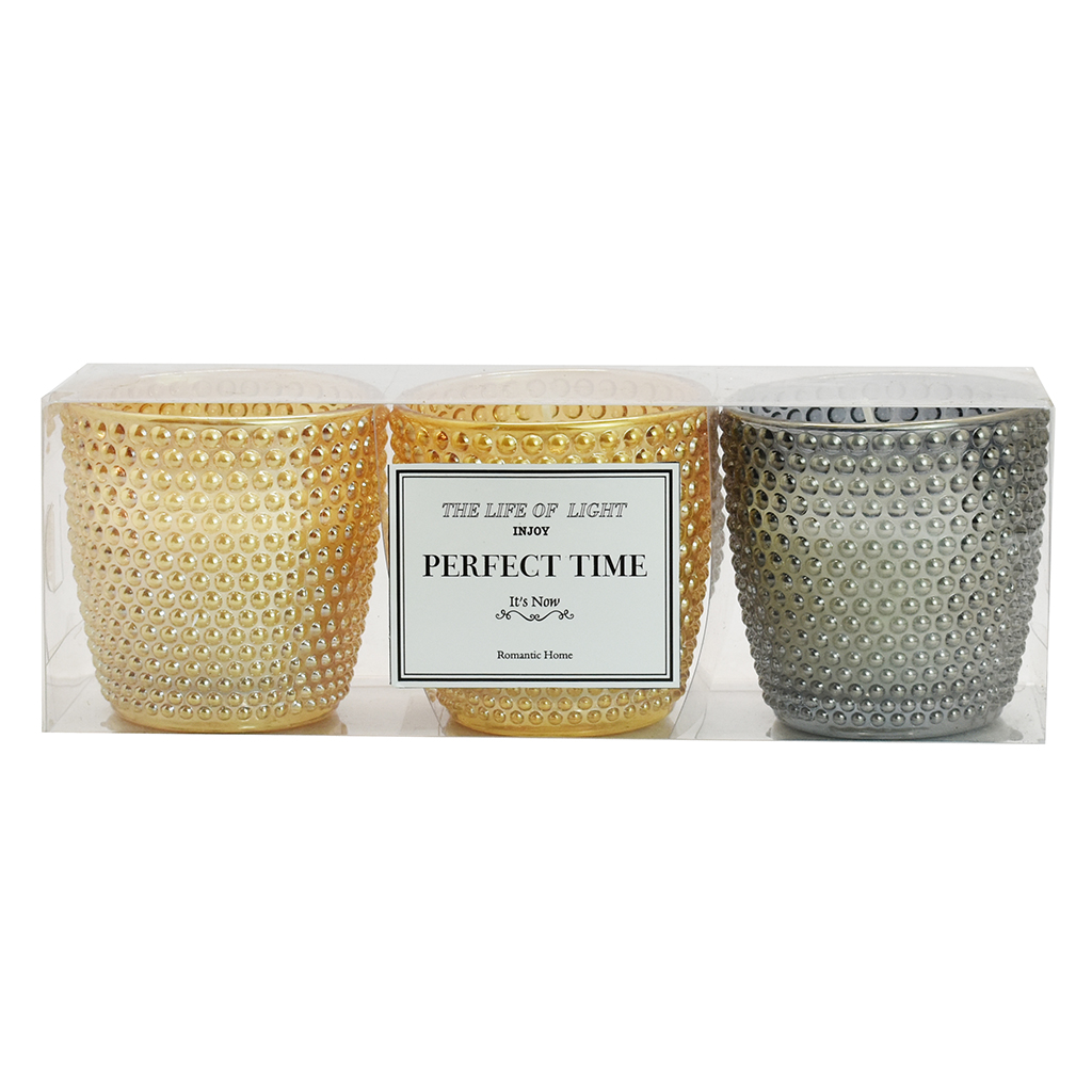 SET X3 VELA RECIPIENTE VIDRIO 22X7.5X7.5CM DOTS