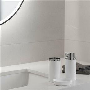 El set de accesorios de la marca Free Home te ayuda a mantener en orden los elementos esenciales de tu baño para el día a día. De elegante diseño en color blanco, este set de 3 piezas está compuesto por un dispensador, un portacepillo, y una jabonera.
