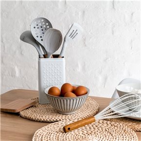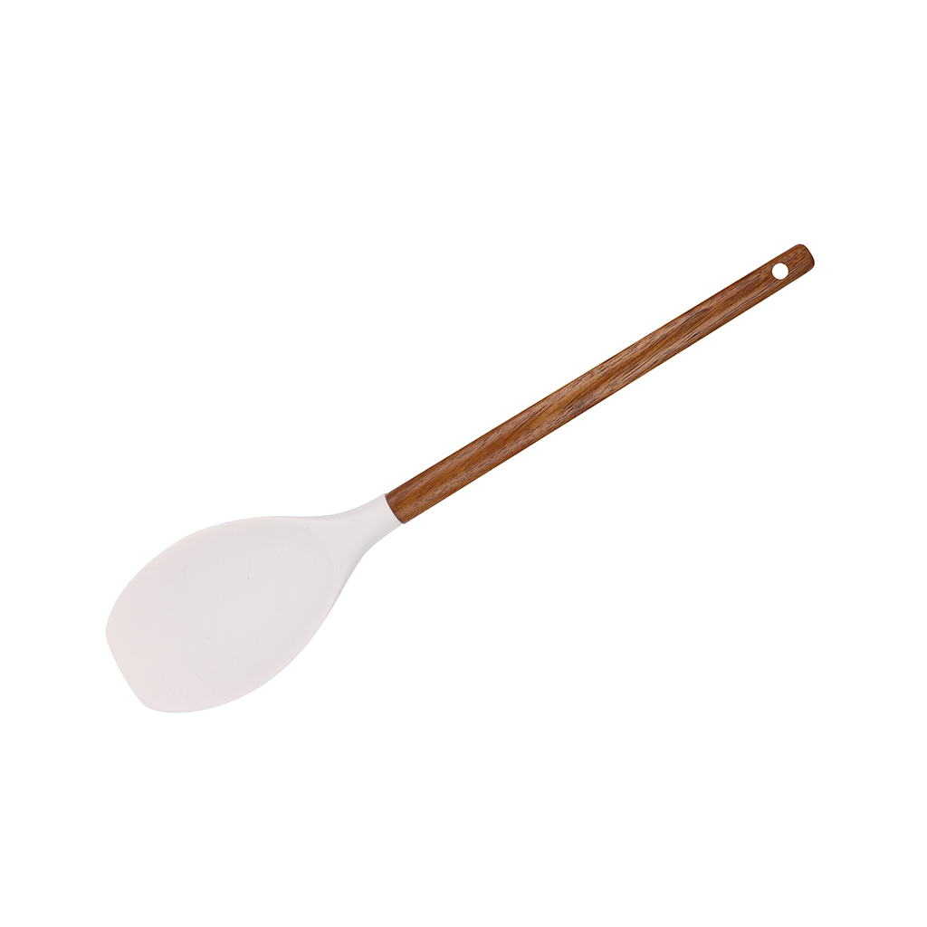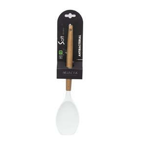CUCHARA SILICONA RECTA MANGO ACACIA BLANCO 31CM