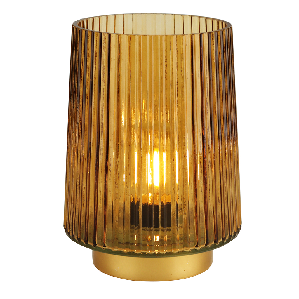 FAROL DE VIDRIO DORADO C/LAMPARA A PILA 13X13X17.5CM