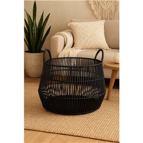 CESTO C/ASAS D30X25CMS PLASTICO SIMIL RATAN NEGRO